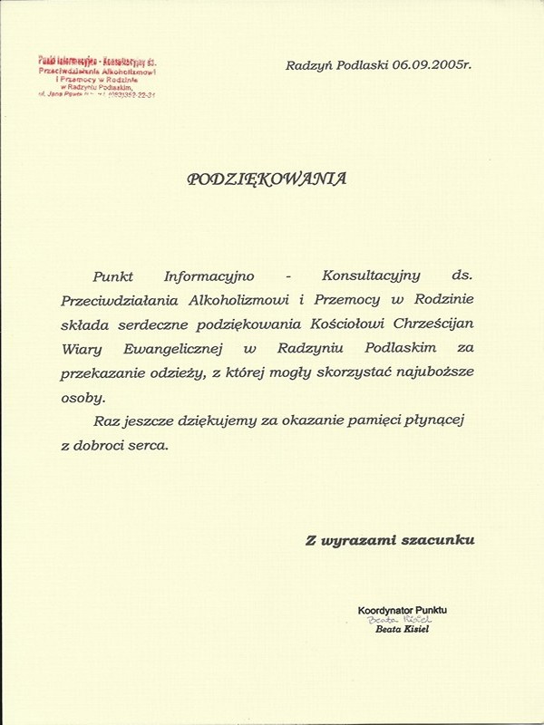 Podziękowania